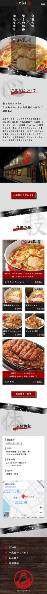 | 概要 | 釧路にあるラーメン屋の公式Webサイト |